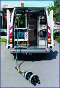 Über Schacht und Hauptkanal wird die »Lindauer Schere« als Satelliten-Kamera eingesetzt. Mit der ausfahrbaren Schere wird die Kamera in die ff. Abzweige hineingelenkt. Ein einfaches und »pfiffiges« Verfahren, bei welchem keine Revisionsöffnungen, Kontrollschächte im Grundstück oder Haus gesucht, geöffnet und später wieder verschlossen werden müssen. Über die Ortung wird der Verlauf erfasst und mit der Software »GKE« festgehalten. Ein simples, aber geniales Satellitensystem für die gesamtheitliche Betrachtung der Kanalisationsleitungen.